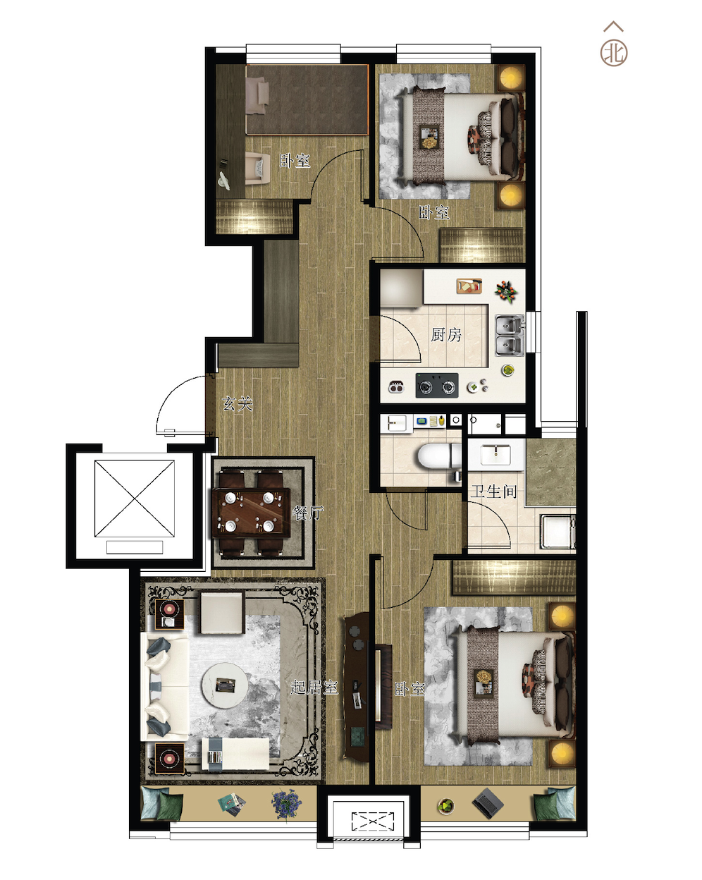 各个空间户型方正,后期空间利用率高;整个空间全明通透,采光良好,同时利于居住空间通风;居室布局合理,通风良好,动静分离,兼顾到了卧室和卫生间的私密性;卧室厨卫等各个功能区的面积大小都比较合理,居住体验便利,整体舒适度高;公摊高于15%且低于25%,符合住宅公摊正常范围。